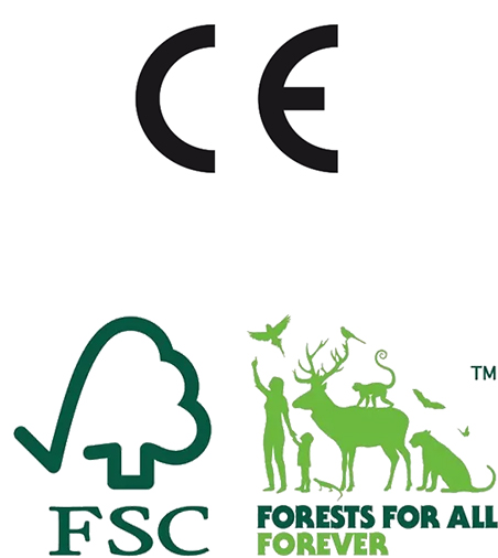 商標は、厳格な環境的、社会的、経済的基準に従って、管理され責任ある方法で管理されている森林からの木材を含むすべての製品を識別するために使用されます。 Chain of Custody (COC) 認証は、認証された材料のトレーサビリティを保証します。このようにして、当社は製品に使用される木材の原産地を適切に管理することを保証し、責任ある森林管理と環境保護に対する当社の積極的な貢献を透明性のある方法で示すことができます。ご要望に応じて、FSC または PEFC 認証製品を供給できます。